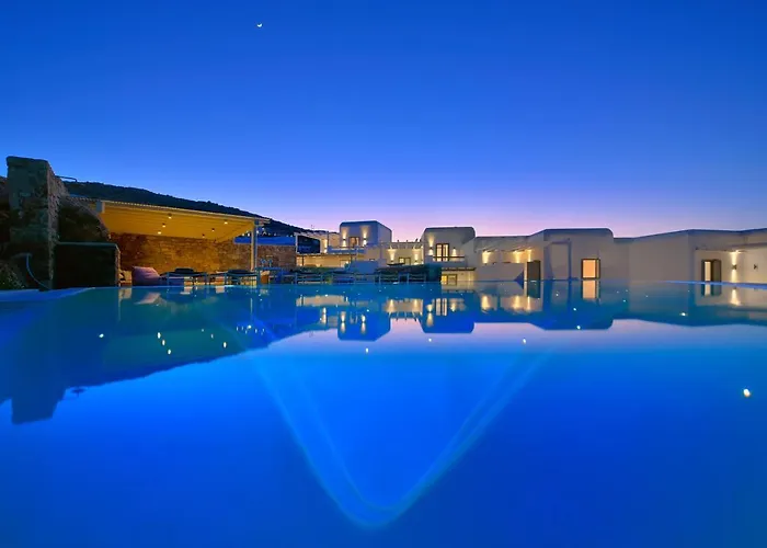 De luchthaven Mikonos is binnen 5 minuten rijden te bereiken en natuurattracties zoals het Agios Stefanos-strand liggen op circa 10 minuten rijden. De 5-slaapkamer Villa Indigo - Mykonos is gesitueerd binnen 4,1 km van het Klein Venetië. De villa is binnen ongeveer 15-minuten rijafstand van het Landbouwmuseum gesitueerd.